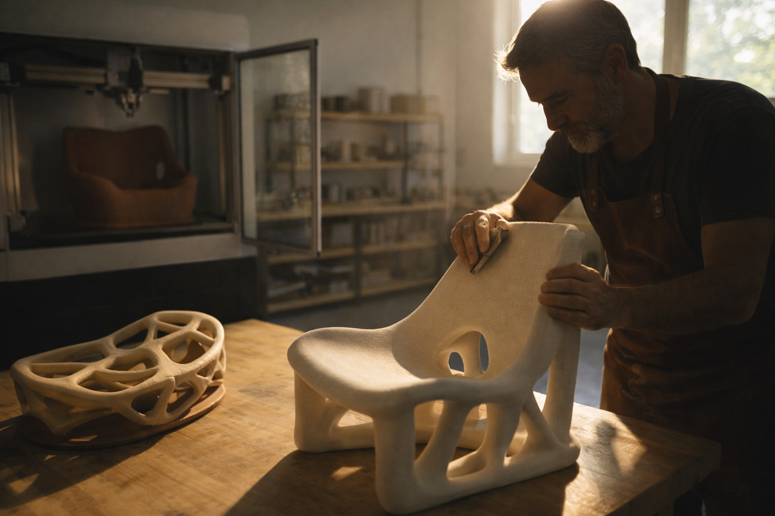 Objetos y muebles donde la tecnología 3D, la artesanía y la sostenibilidad se encuentran para crear piezas con alma